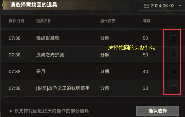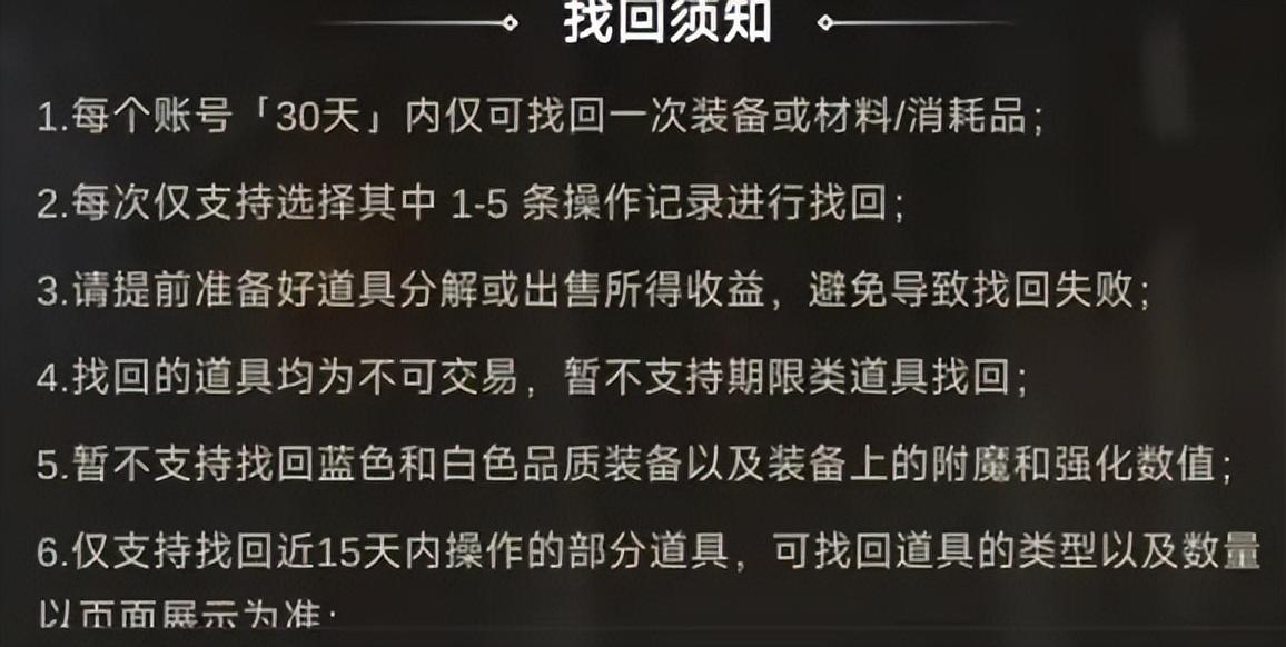 ⑤只能找回15天以內誤操作的裝備,手遊從5.21開服;