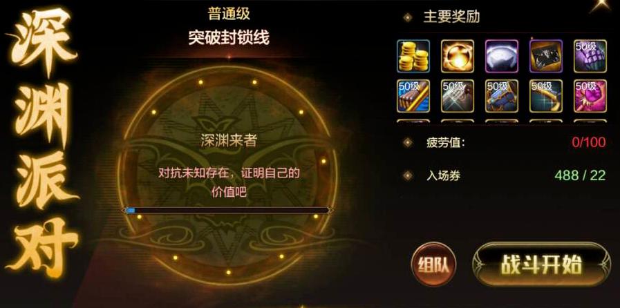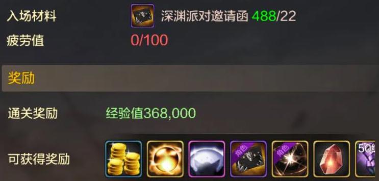 這張圖其實就算一種常規深淵了,每次進場需消耗4點疲勞+22張邀請函。