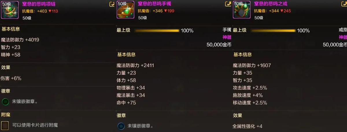 「首飾」推薦“悲鳴洞穴3件套”,除了項鍊表現優秀外,戒指和手鐲隨便爆出一件史詩都可以替換。