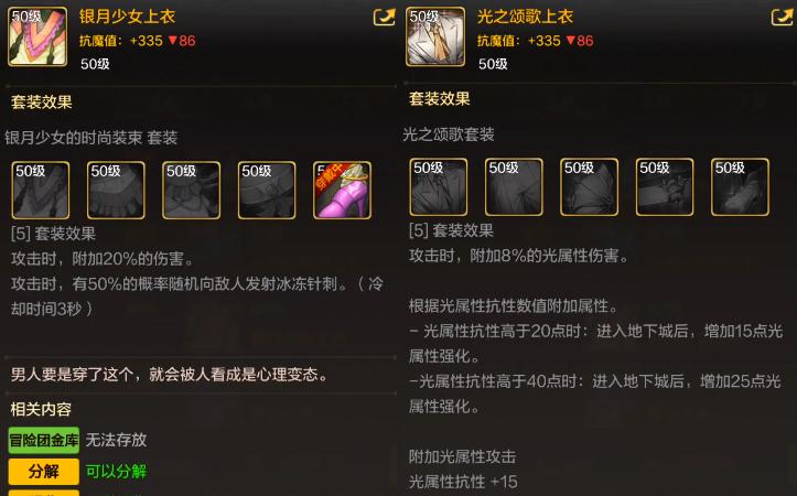 然後推薦“光之頌歌套”,附加光屬性攻擊,增加光屬性傷害,實際提升只比少女套差一點點。