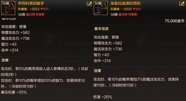 「武器」首選“觸手法杖”,增加25%暴擊傷害;次選“預知法杖”,增加20%傷害。