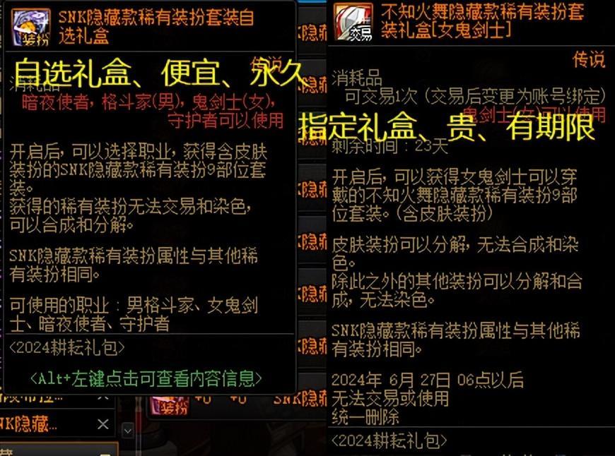 而且最重要的是,“自選禮盒”還是永久的、不限制交易的,而“指定職業時裝”不僅有刪除時間,而且還只能交易一次。
