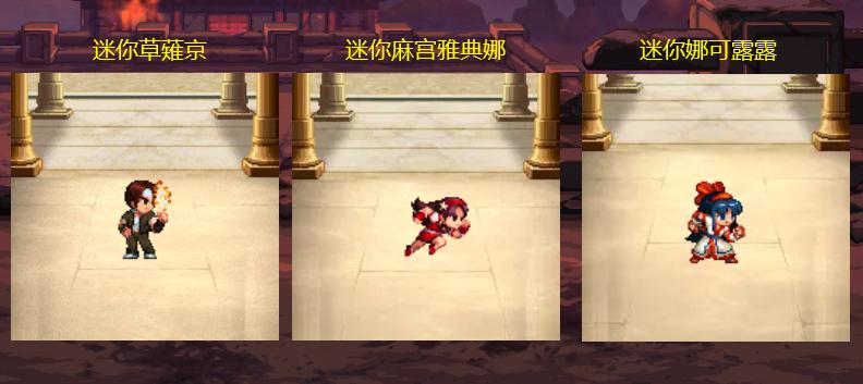 直接搜「SNK寵物自選禮盒」,可以從迷你草薙京、迷你麻宮雅典娜、以及迷你娜可露露這3種寵物中任選一隻獲得,售價在2500萬左右。