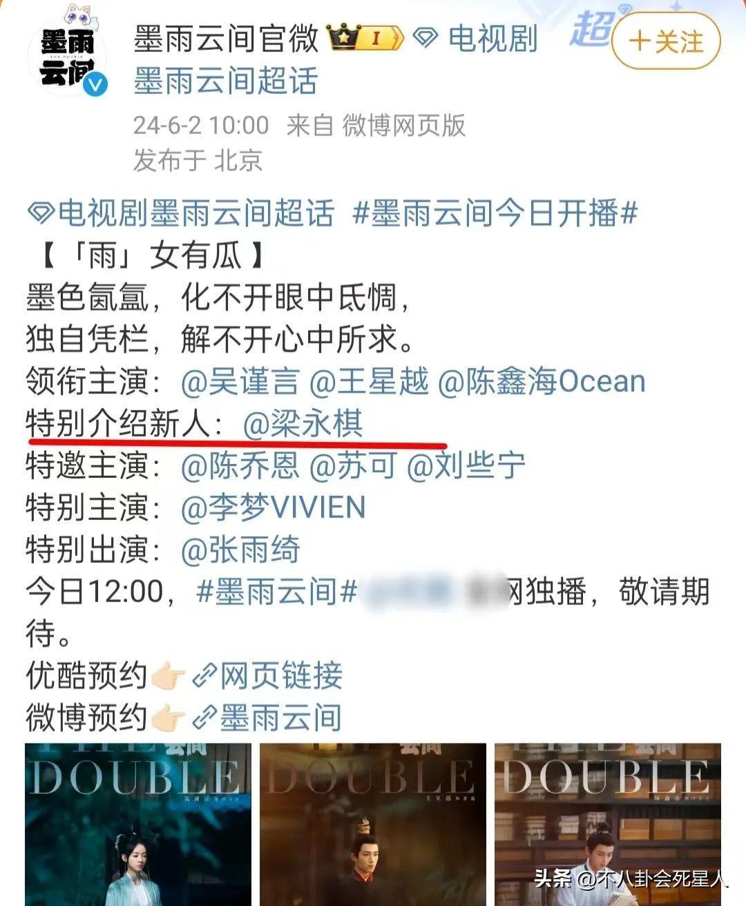 值得注意的是,《墨雨雲間》官宣定檔時,官方直接弄了一個“特別介紹新人梁永棋”,就差把特別想捧他的字樣打出來了。