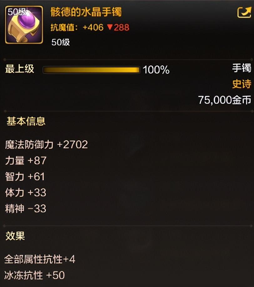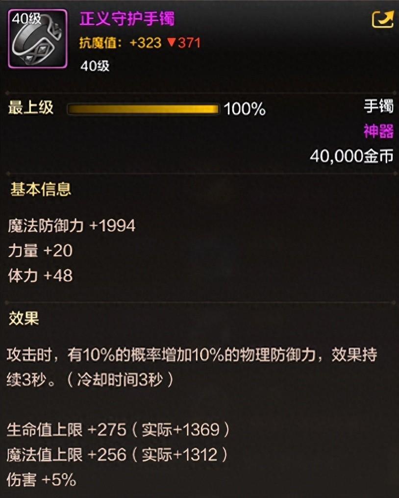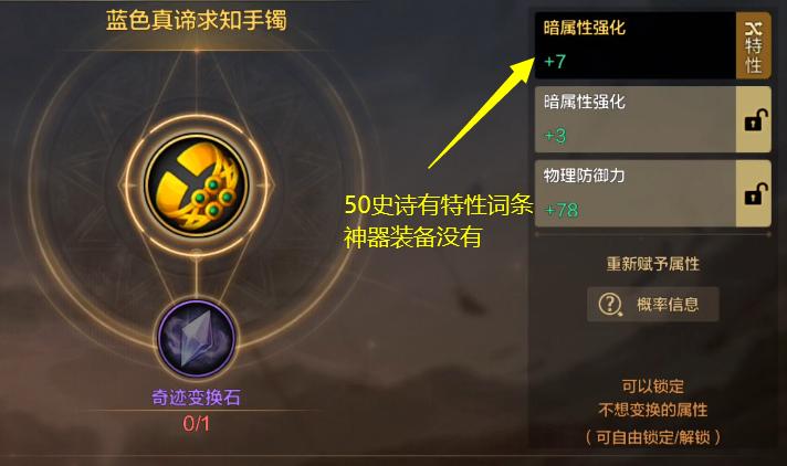 但40級神器手鐲有一個先天短板,那就是它的魔法封印只有2個小詞條,沒有“特性詞條”,相當於間接比史詩手鐲少了7點屬強!