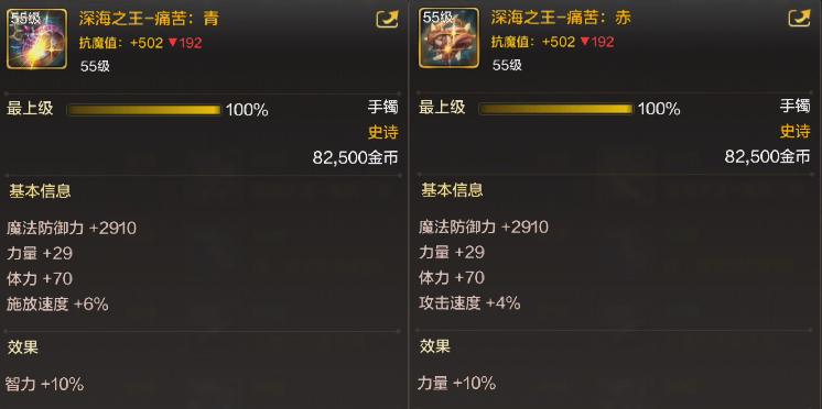 物理職業選“深海之王-痛苦:赤”,+29力量,+4%攻速,+10%力智。