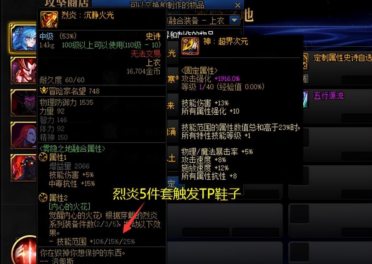而如果選擇“TP鞋子”,就需要搭配上“海俠耳環”和“烈焰貼膜”,速度變慢了,但傷害更高。