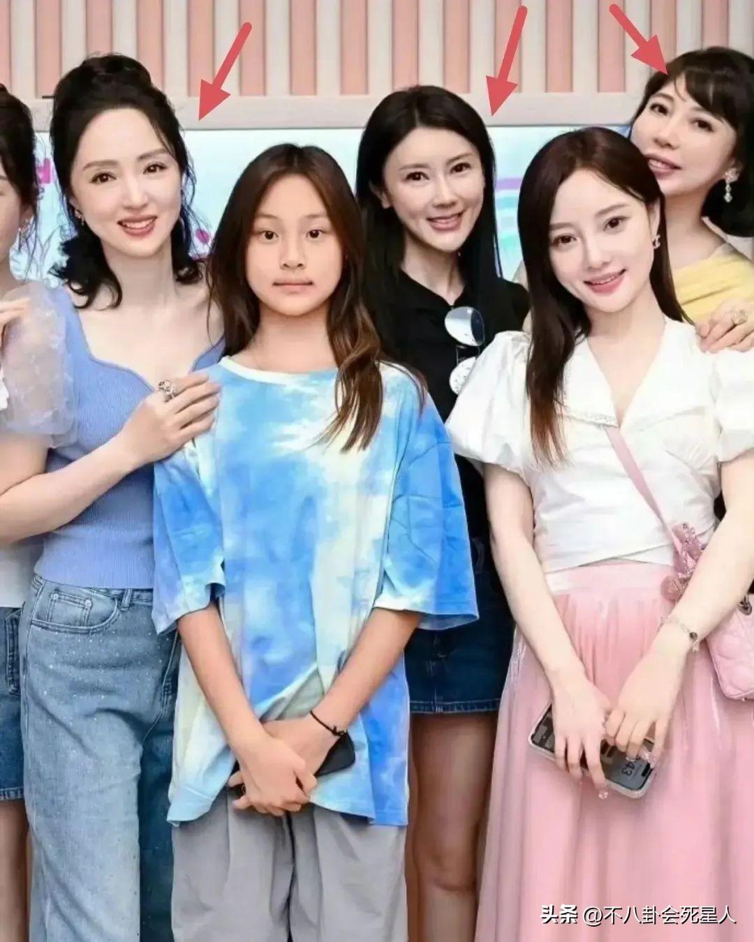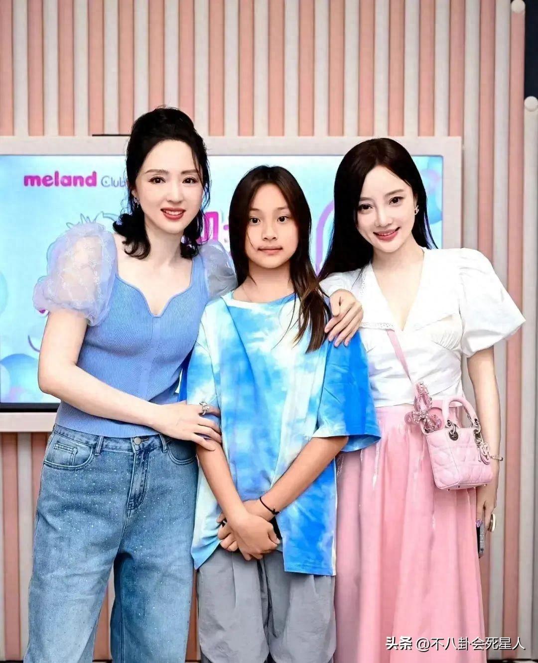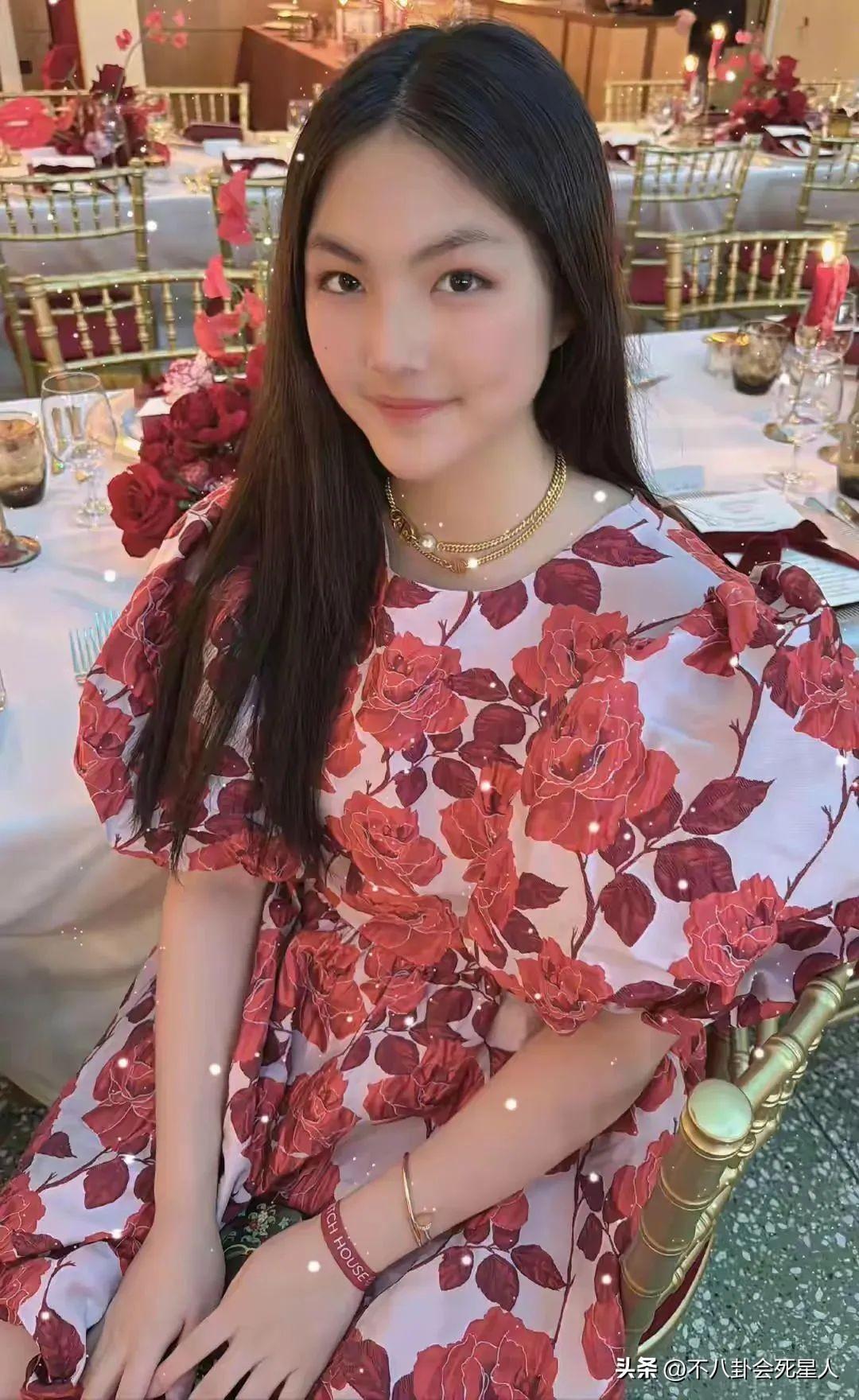 11歲的甜馨站在幾位明星阿姨中間顯得亭亭玉立,身高已經差不多趕上媽媽李小璐了,看來以後是個子高挑的小美女。