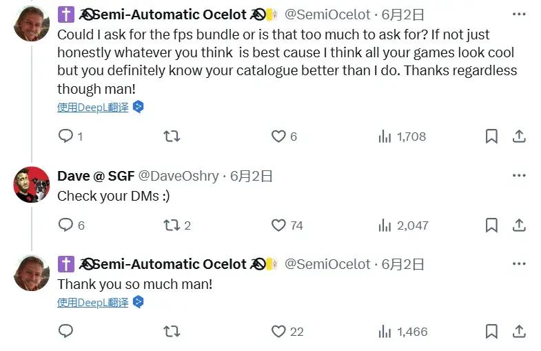 Dave Oshry的這番言論可不是在作秀,有位失業在家的老哥找上了他,想問問看這位討厭錢的CEO能不能送自己一款免費的遊戲,Dave Oshry也是二話沒說,直接讓對方查看私信。雖然咱也不知道Dave Oshry到底送了啥,不過根據兩人的對話來看遊戲確實是送出去了。