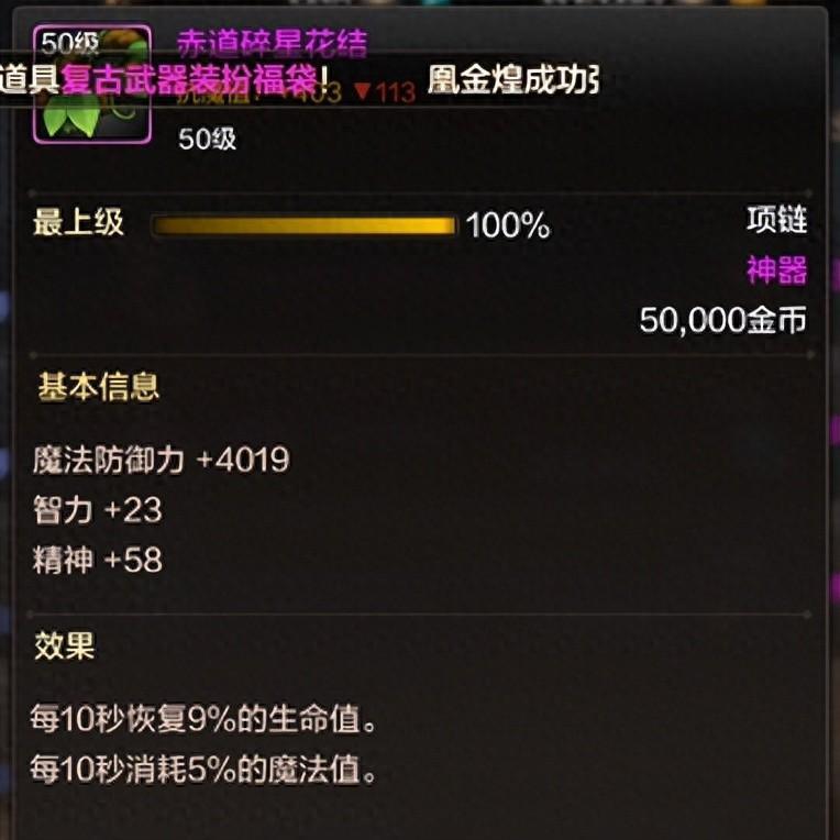 江湖人稱“回血項鍊”:每10秒回覆9%生命值,每10秒消耗5%魔法值!