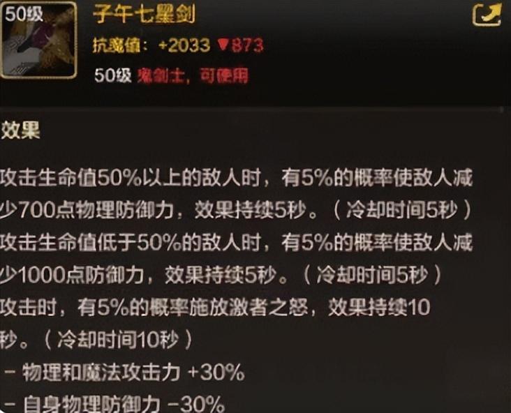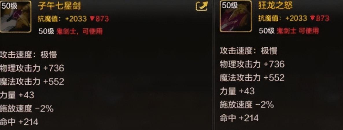 從理論角度來看,子午七星劍的30%雙攻加成顯然優於狂龍之怒的15%物攻與5%力量加成。
