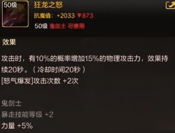 而狂龍之怒在攻擊時則有10%的概率提升15%的物攻,並且它還能增加“怒氣爆發”的攻擊次數以及“暴走”等級,同時帶來5%的力量加成。