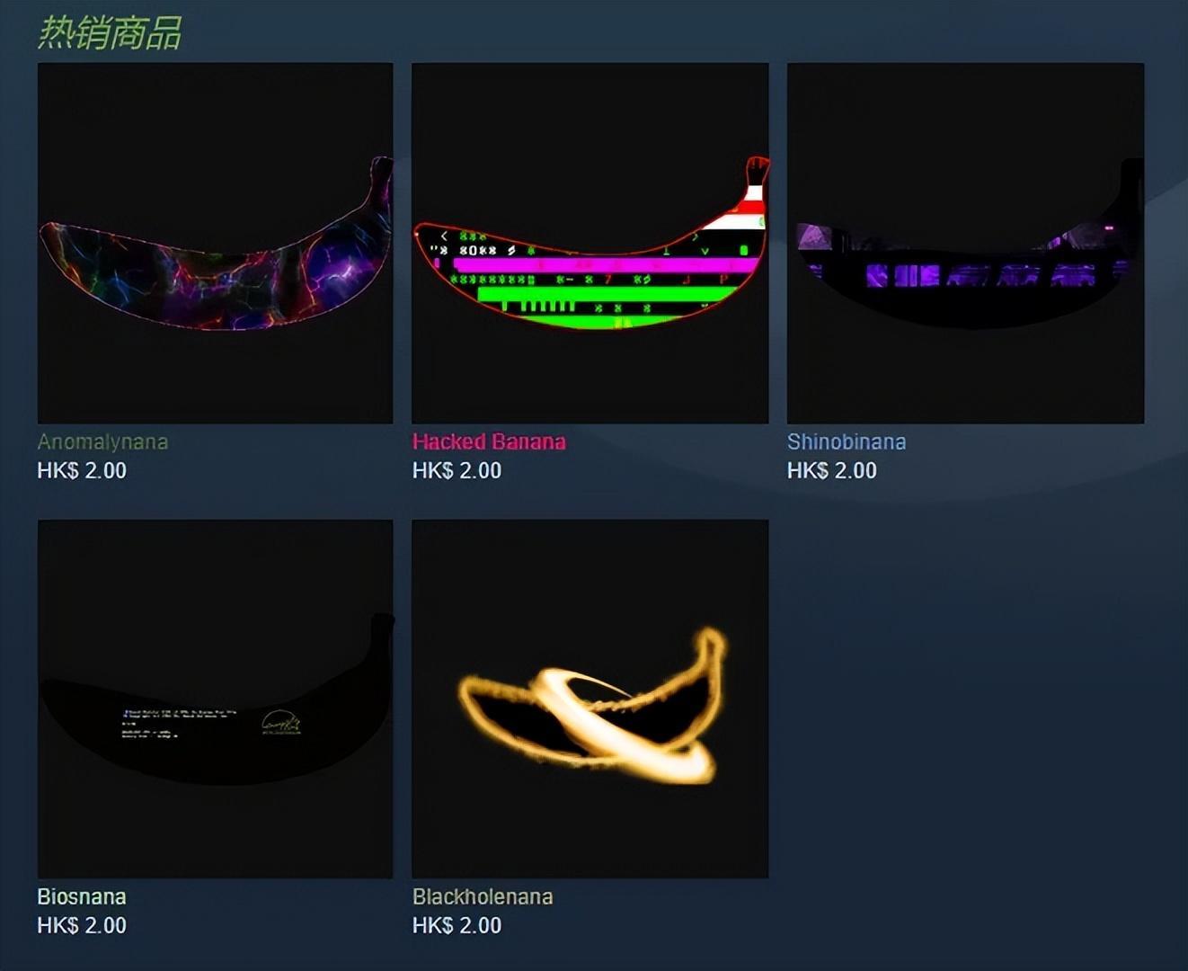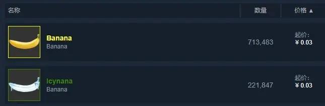 就和NFT這種人爲製造的虛擬代幣一樣,虛擬香蕉也是Steam市場上的虛擬交易物品。目前在Steam的交易市場上,既存在低至幾分錢、存貨量數十萬的普通香蕉,也存在昂貴到價格高達四位數,總數不超過十根的超稀有香蕉。