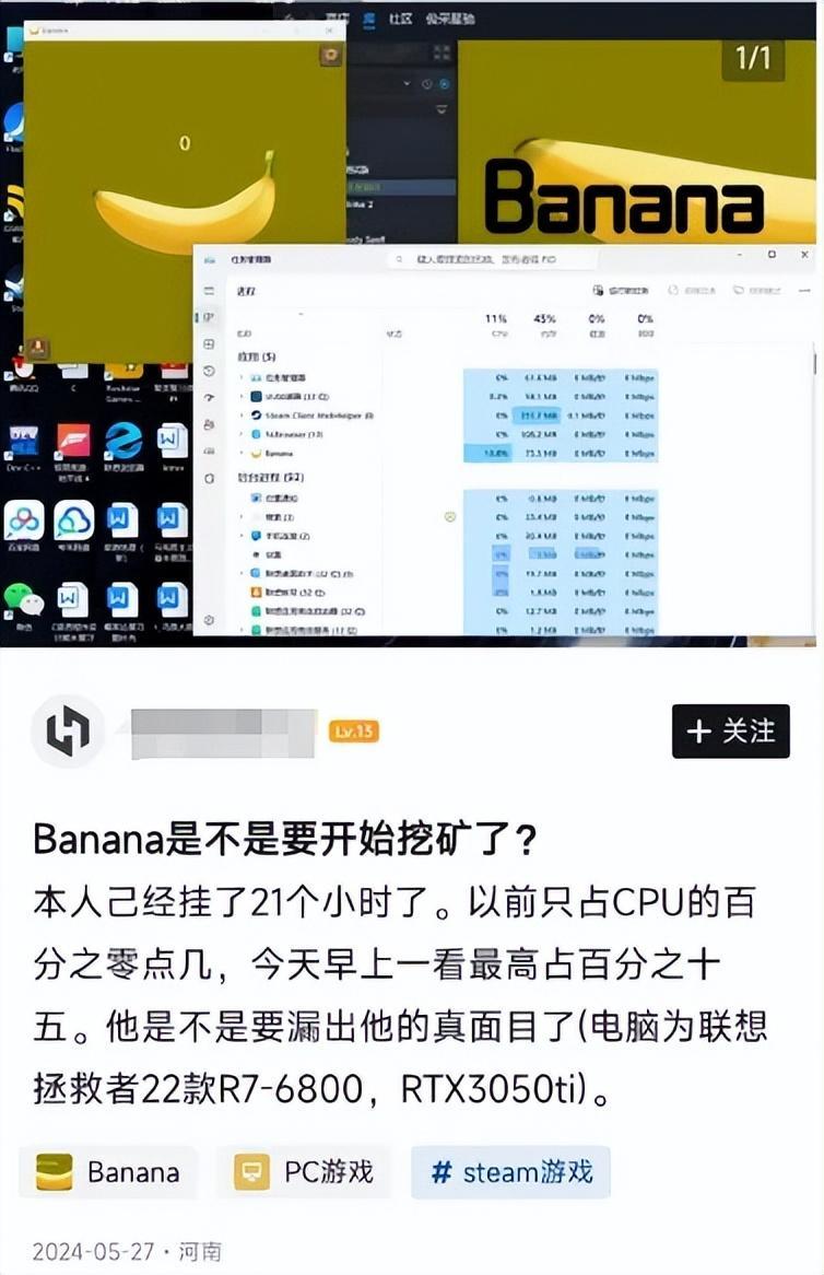 但很快有人發現,其實《Banana》並不佔用網絡和顯卡的算力資源,而且更關鍵的是,遊戲根本不要求玩家始終保持在線,官方自己也在玩家社區中解釋道:“只需要每隔18個小時上線一次即可,無需保持在線18小時。”