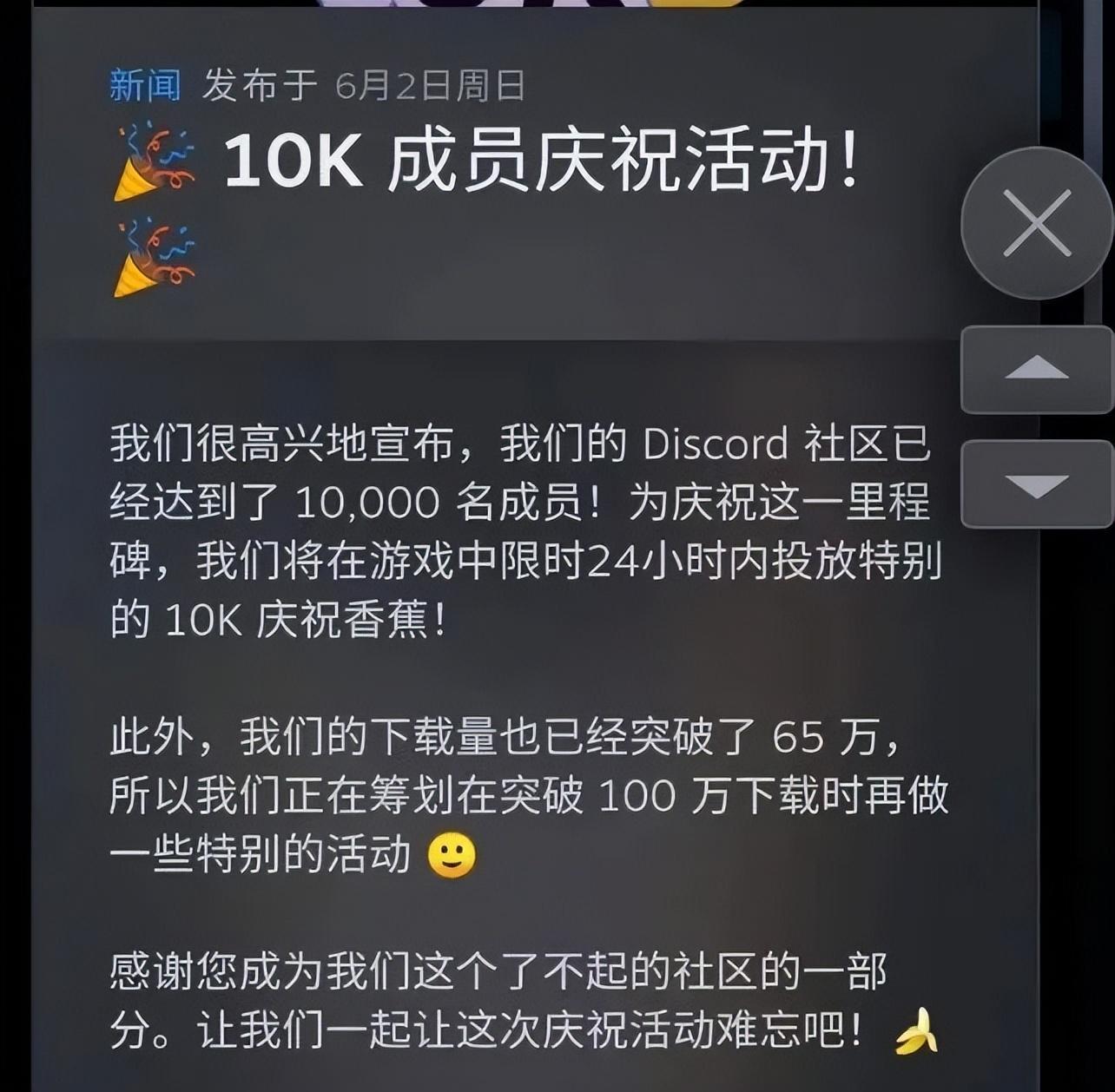 上週爲了慶祝社區成員人數突破十萬,遊戲就推出了一種名爲“10K”的紀念香蕉,掉落的時間只有24小時: