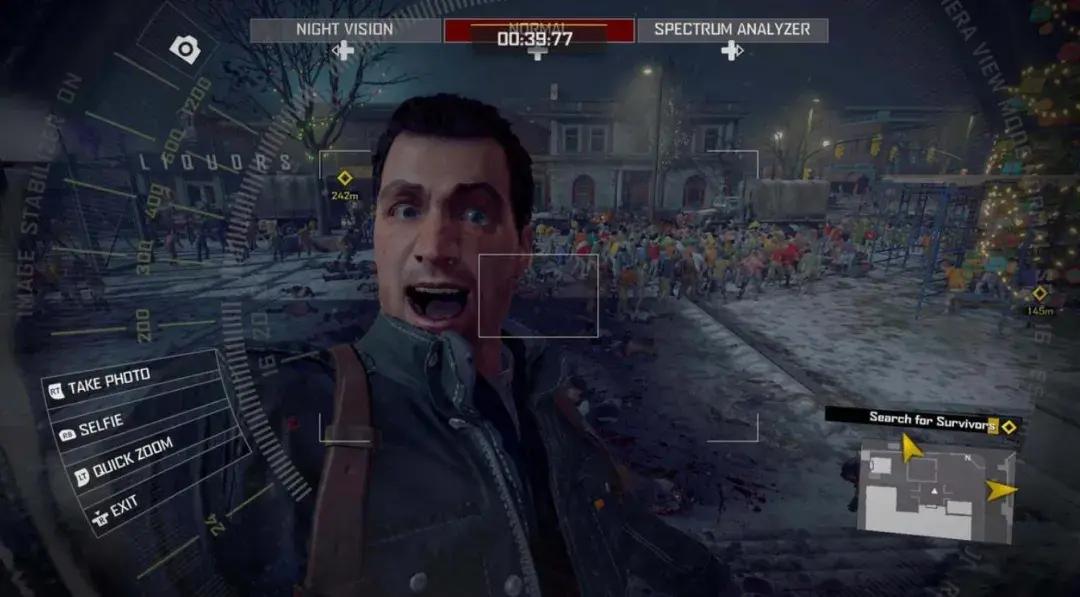 比如著名的《喪屍圍城》初代和四代中,攝影記者出身的主角弗蘭克,可以拿自己所拍到的現場照片賺取點數。天馬行空的“命題作片”內容,與遊戲的戲虐搞怪風格發生了神奇的化學反應,創造出了一場場屬於B級電影的邪典盛宴。