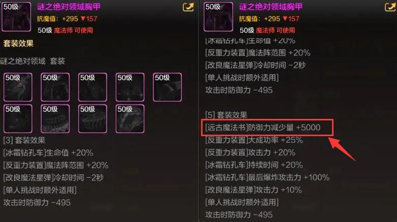 魔道專屬輔助套裝,增加技能傷害的同時,還可以減少敵人5000防禦力,隊友也能享受間接增傷效果。