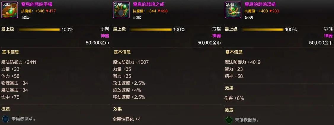 【首飾】推薦“悲鳴洞穴3件套”,可通過悲鳴洞穴製作,優先製作“項鍊”,手鐲和戒指部位還可以用塔首飾也不錯。