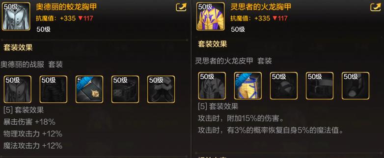 其次選擇“靈思者的火龍套”,單件有減少藍量的效果,不過套裝屬性可以彌補。