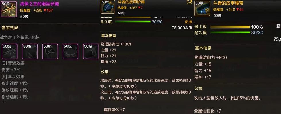 然後就是深淵爆出來的散搭、以及決鬥場兌換的史詩裝備,可以優先兌換決鬥場的“頭肩+腰帶”,搭配上戰爭之王3件套。