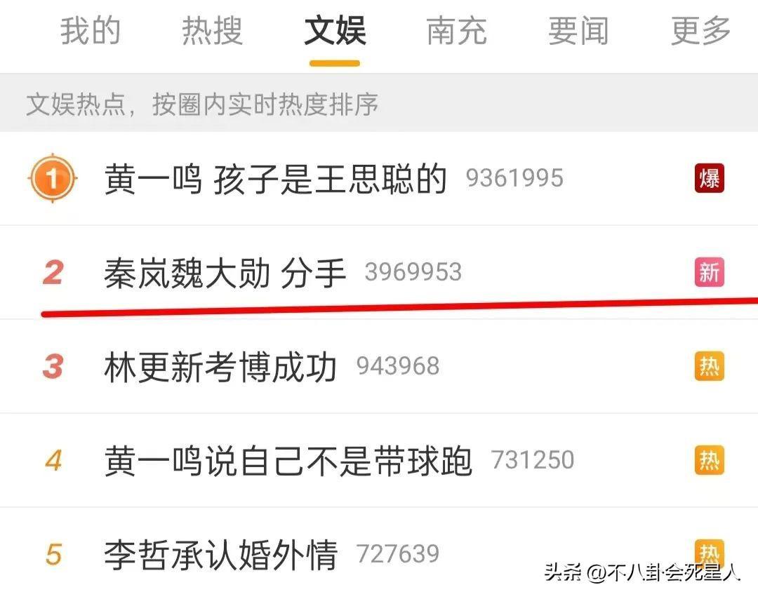 消息一出,立即引發網友熱議,不少人猜測他說的是魏大勳和秦嵐,很快,一則秦嵐魏大勳疑似分手的詞條,衝到了熱搜前排。