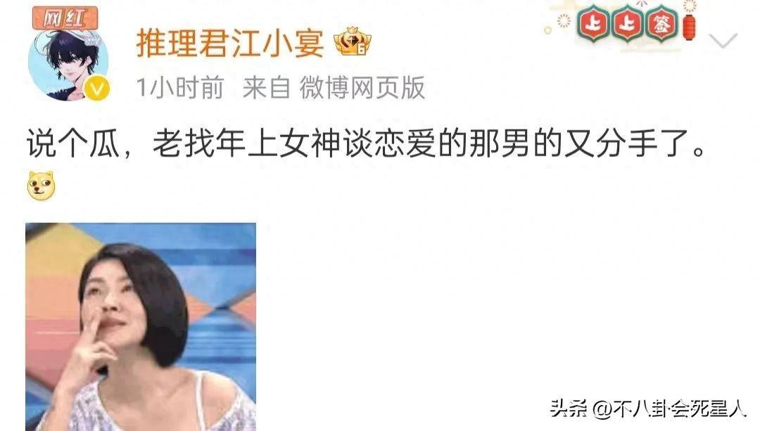 6月12日,狗仔江小宴發佈動態,表示老找年上女神談戀愛的男的,已經分手了。