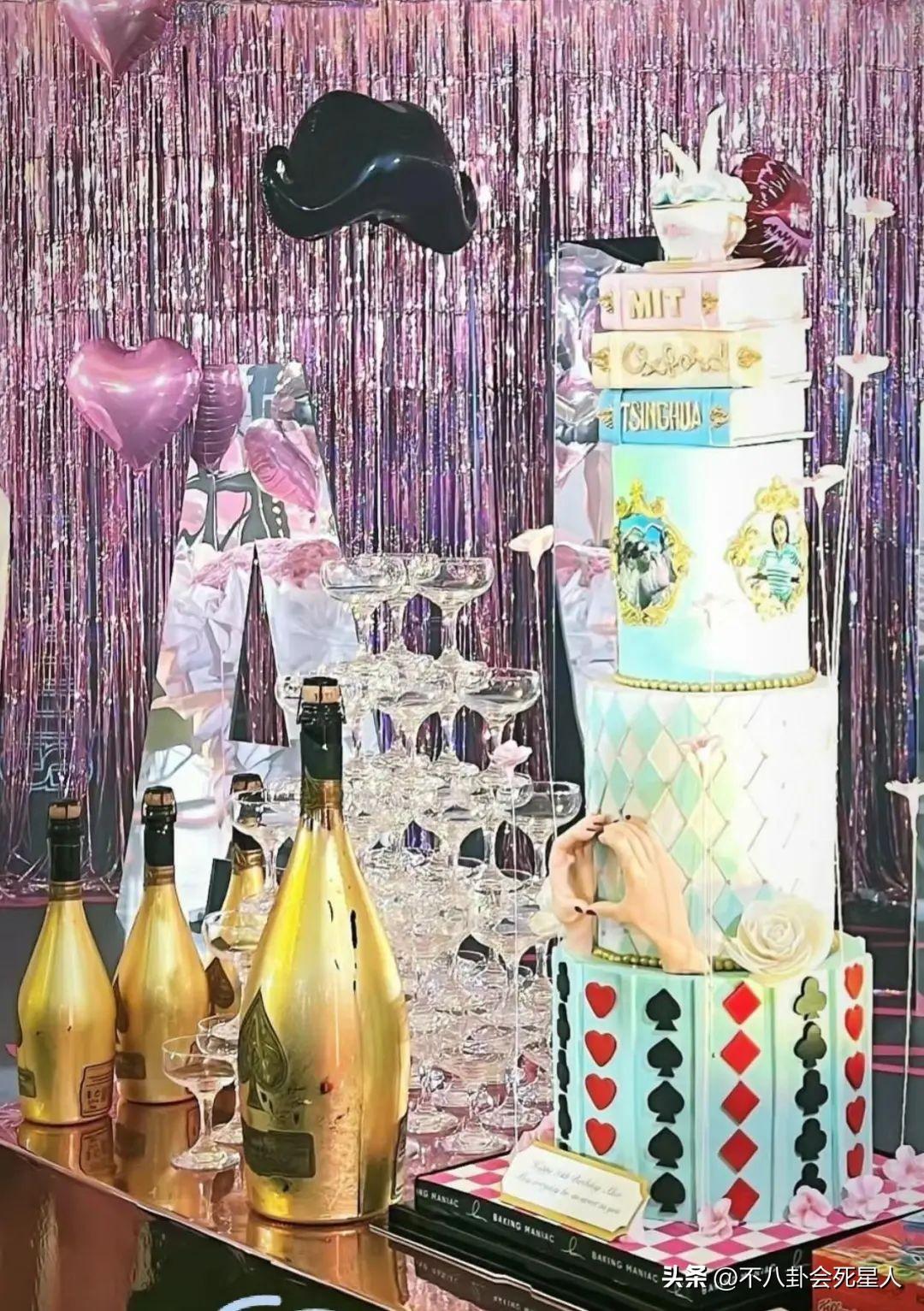 何超欣穿着華麗的禮服,現身則擺放着7層高的蛋糕和香檳,佈置得十分夢幻和奢侈。有網友都感慨,看完何超欣的生日派對,都不羨慕王詩齡了。