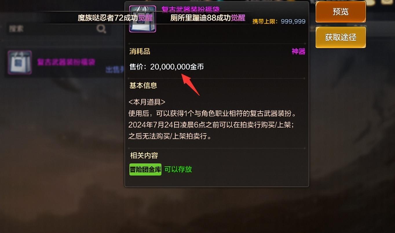 拍賣行售價10多萬泰拉,可以出售商店2000萬金幣,這是獲取金幣最快的途徑之一。