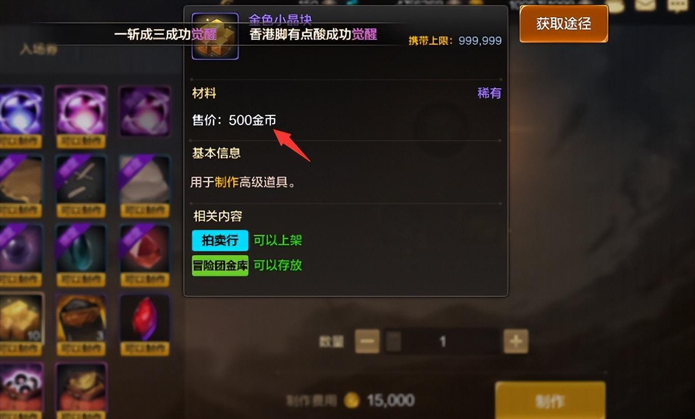目前最主流的方式,讓小號製作“黃金”,然後再製作“金色小晶塊”,大號可以把這個金色小晶塊拿去賣掉,500金幣一個。