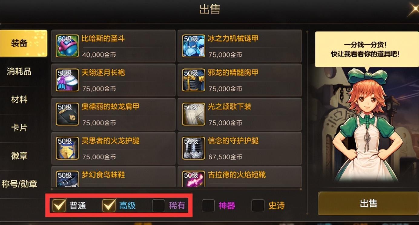 之前大家可能習慣性分解裝備,實際意義不太大,直接賣掉裝備,每天也有幾十萬金幣到手。
