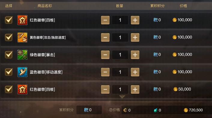 每天可以把商城中的徽章拉滿,大概會消耗200多萬金幣,如果金幣不夠,優先推薦紅色。