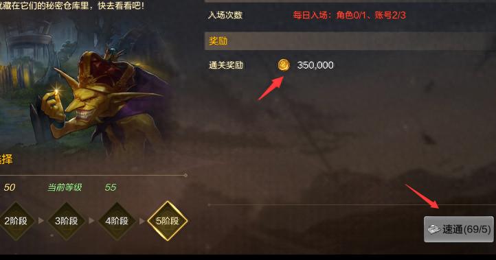 每天可以“免費速通”一次,大家儘量打到自己能過的最高層,這樣可以多拿金幣;