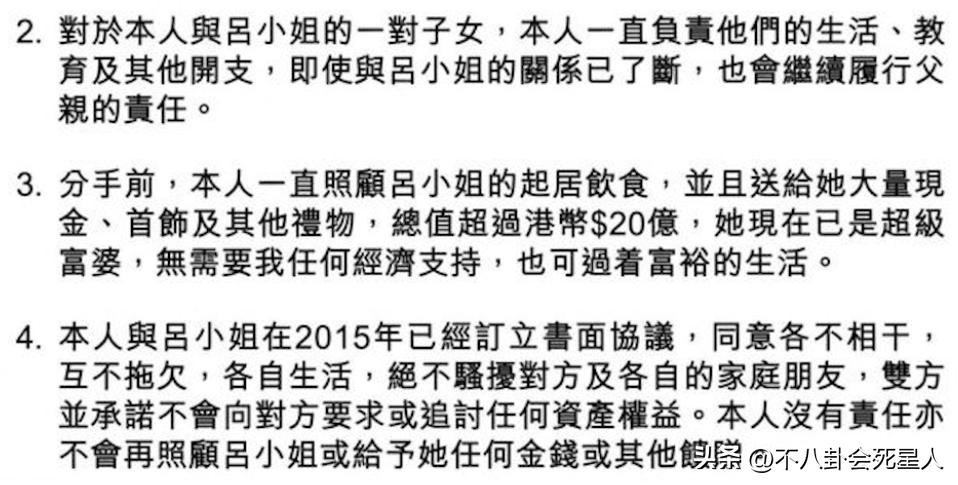 劉鑾雄還說,呂麗君跟着自己的那些年身家早已經賺夠了20億,夠她和孩子生活,所以不再給她一分錢。