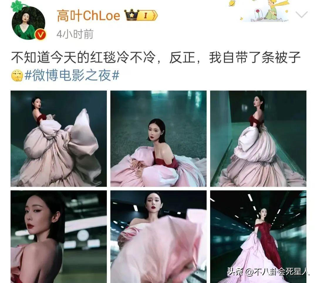 高葉身穿玫紅色禮服搭配粉色超大裙襬,這身禮服一般人真是hold不住,“大嫂”穿着氣場十足。