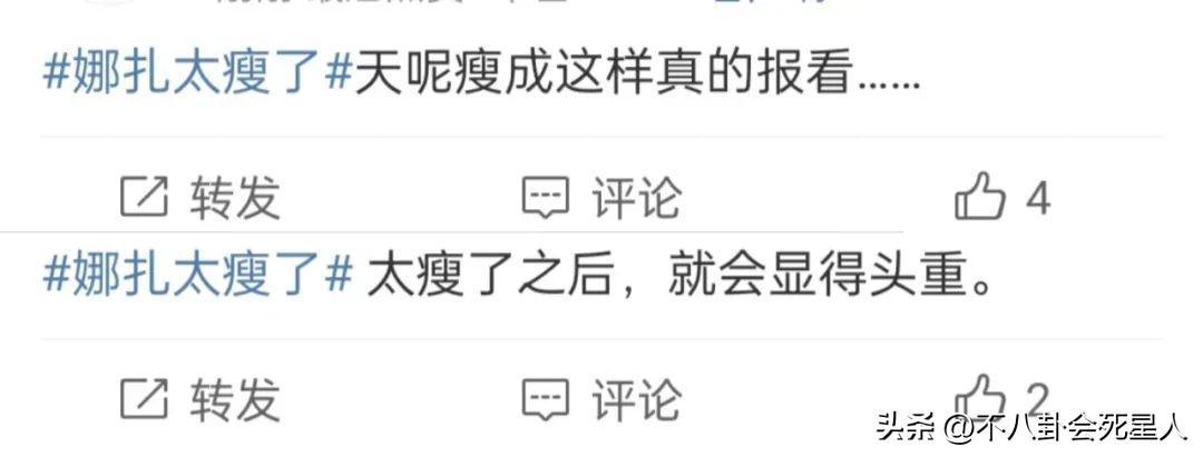 但是,娜扎瘦得太多了,肋骨十分明顯,顯得頭大身子小,給人一種大頭娃娃既視感。