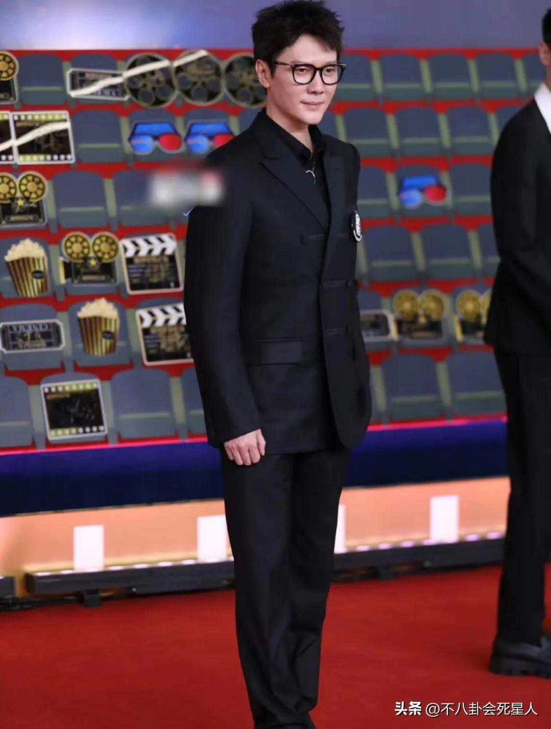 馮紹峯戴着黑色眼鏡,與一身黑西裝十分相配,顯得氣質儒雅,他的狀態在同齡男星中算不錯的了。