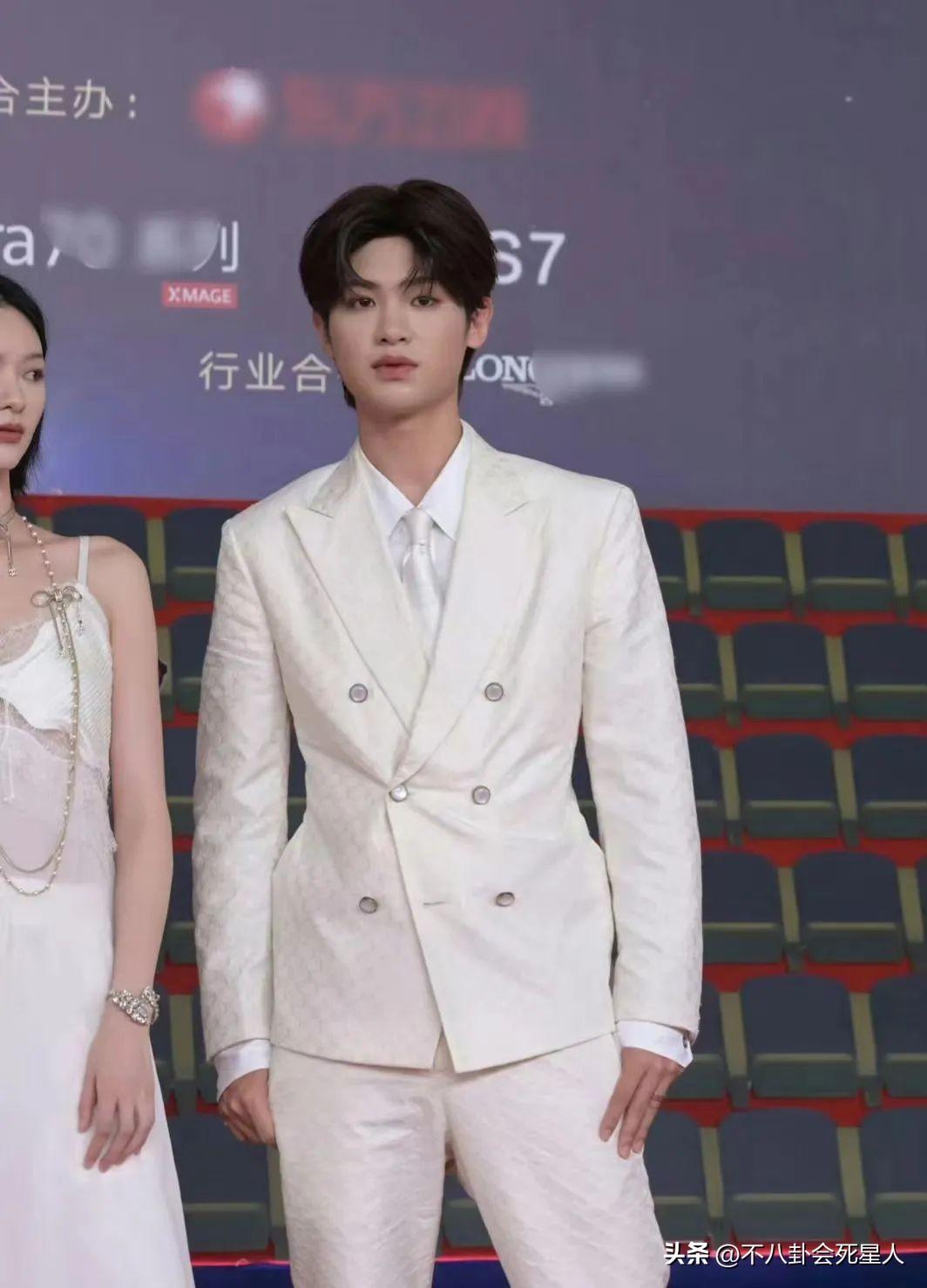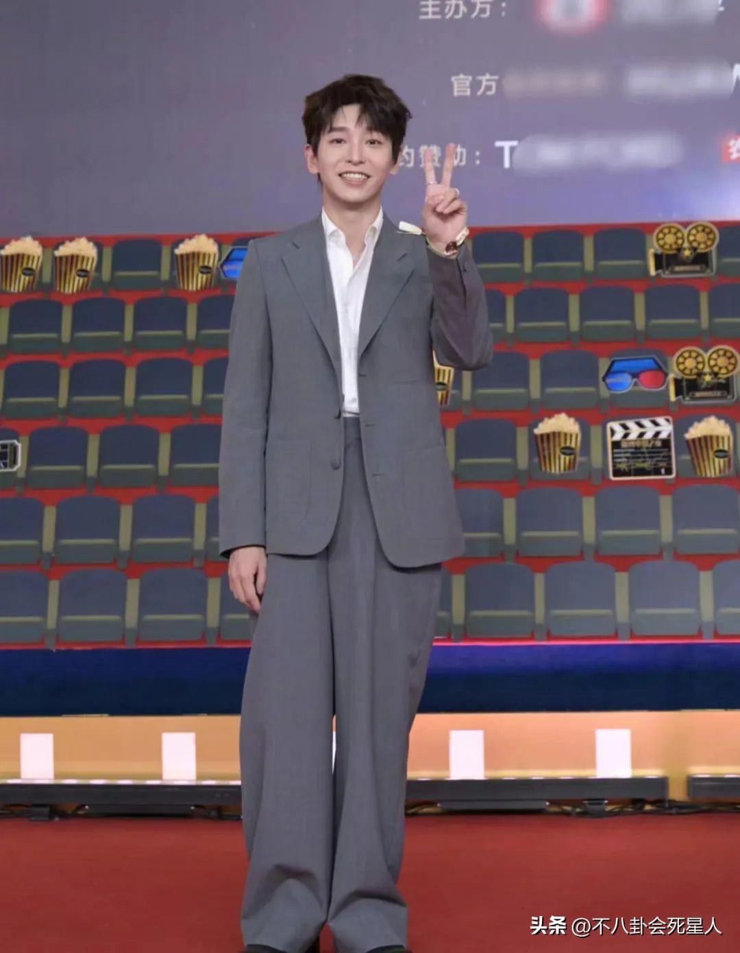 在一衆黑色西裝與白色西裝之間,彭昱暢的灰色西裝,令人印象深刻,他變瘦了不少,有種男大的感覺。