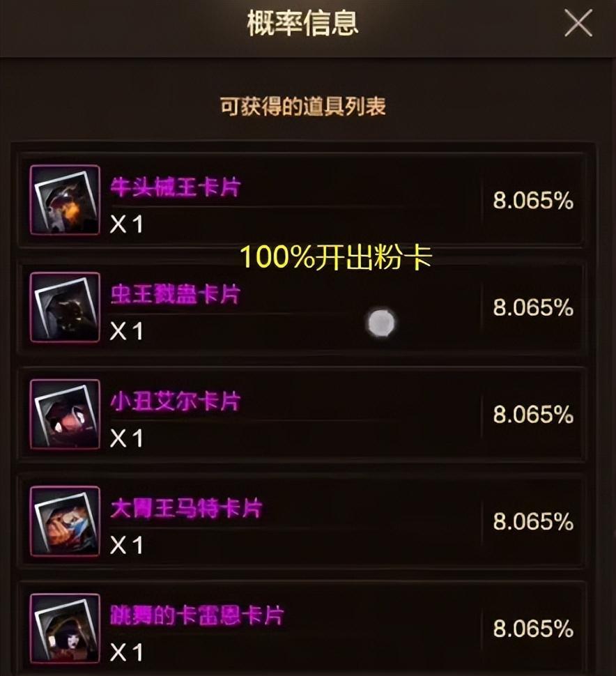 除了“生命值卡”略微遜色之外,其餘卡片基本上全都是現階段最好的畢業粉卡,開服前期只要任意爆出來一張,就算暴富!