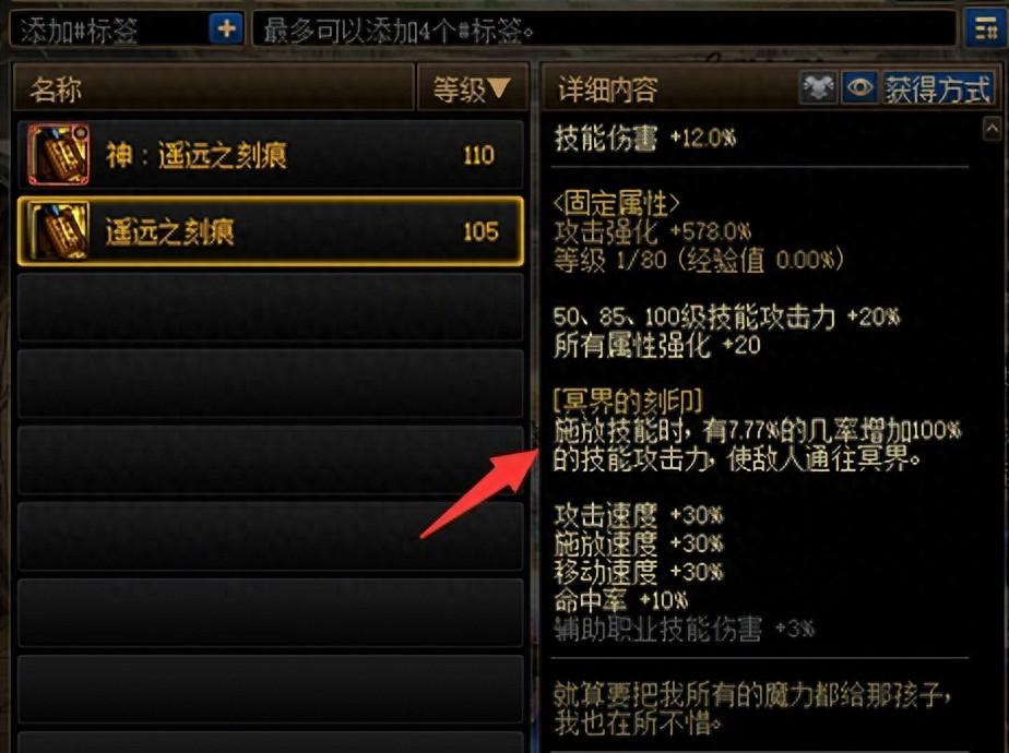 「遙遠之刻痕」覺醒技攻+20%,攻速+30%,釋放技能時有7.77%概率增加100%技能攻擊力!