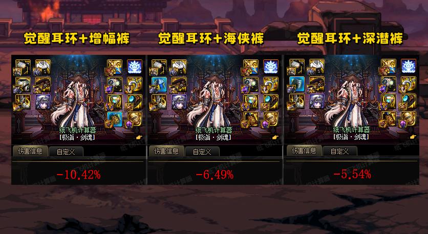 至此,覺醒耳環比深潛耳環就只少了5~6%傷害。