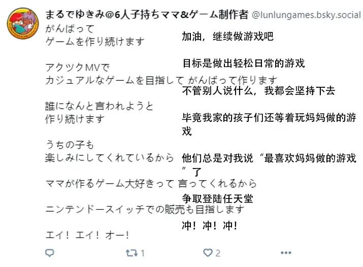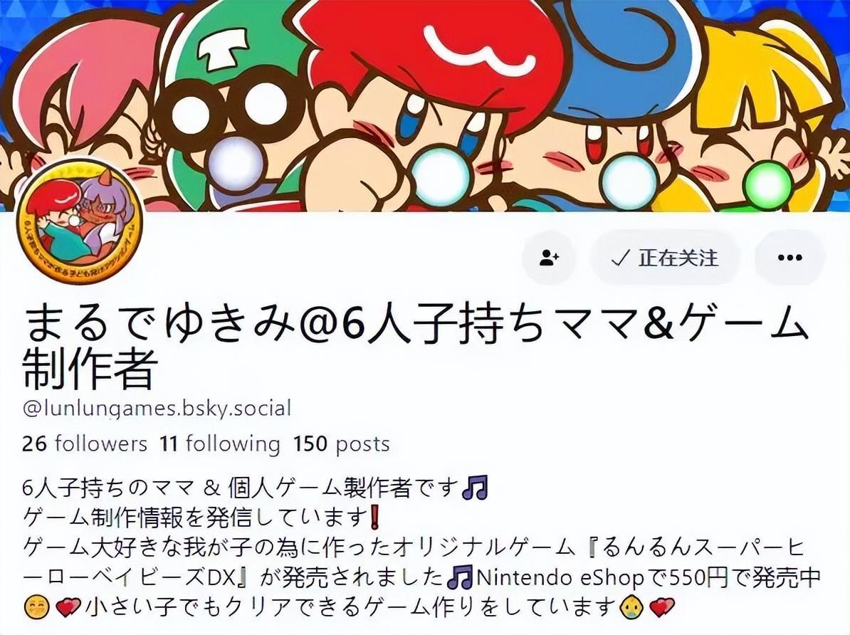 面對如此高強度的生活節奏,雪見非但不覺得疲憊,反而向我表示,正是因爲工作、家庭、養育孩子、製作遊戲都很困難,這些經歷才稱得上寶貴的人生經驗。在各種社交平臺、eShop商店頁面,雪見都會這樣自豪地介紹自己:我是一名遊戲製作者,也是六個孩子的媽媽。