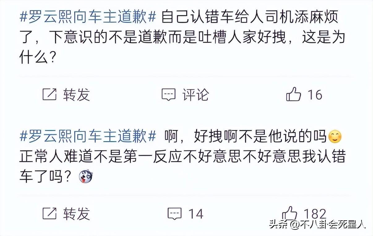 沒過多久,羅雲熙發文道歉,表示他說的那句話是爲了緩解尷尬,很抱歉給車主帶來了不便,希望大家能理性對待,不要給他人造成困擾。