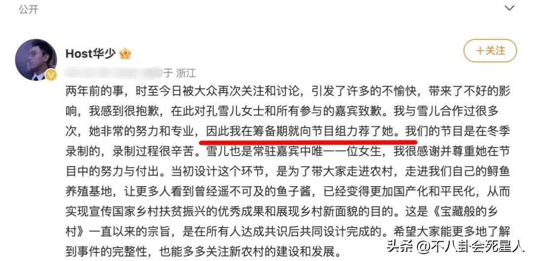 其他幾位明星,素質差還莫名有優越感,“魚子醬”事件發酵後,華少發文道歉,字裏行間都很傲慢,不知道有什麼可拽的。