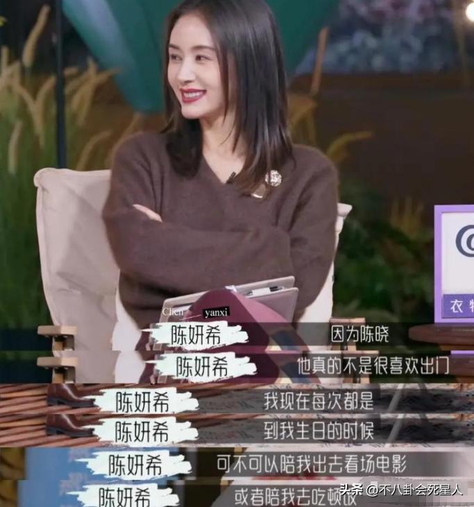 還有陳妍希又說陳曉很宅,婚後幾乎不會陪自己出去看電影喫飯,還是自己在生日的時候纔敢跟他提要求。