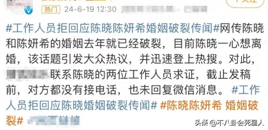 媒體爆料陳曉和陳妍希離婚的事情,把兩人推上了“熱搜”,目前輿論沸沸揚揚,有說陳曉“冷暴力”陳妍希,但目前,雙方還沒有出面正式回應這件事。