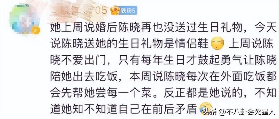 她說陳曉結婚前很浪漫,結婚後從來沒有送自己禮物。