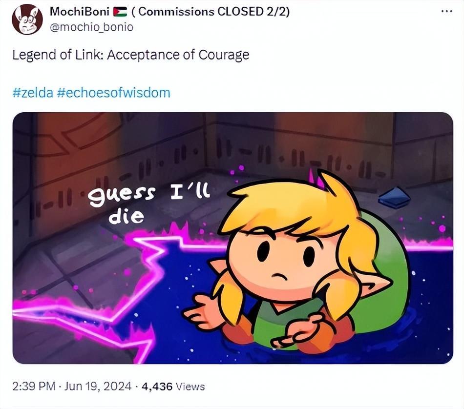 總之,你很容易從各式各樣的二創中感受到玩家們對於本次新作的期待。從《荒野之息》和《王國之淚》的3D開放世界,轉而推出基於卡通風格的固定俯視角遊戲,乍看起來似乎是一種簡化,但玩家們的積極性一如既往,甚至大多相信這可以帶來更多巧妙的遊戲性設計……這無疑就是《塞爾達傳說》系列最核心的魅力。