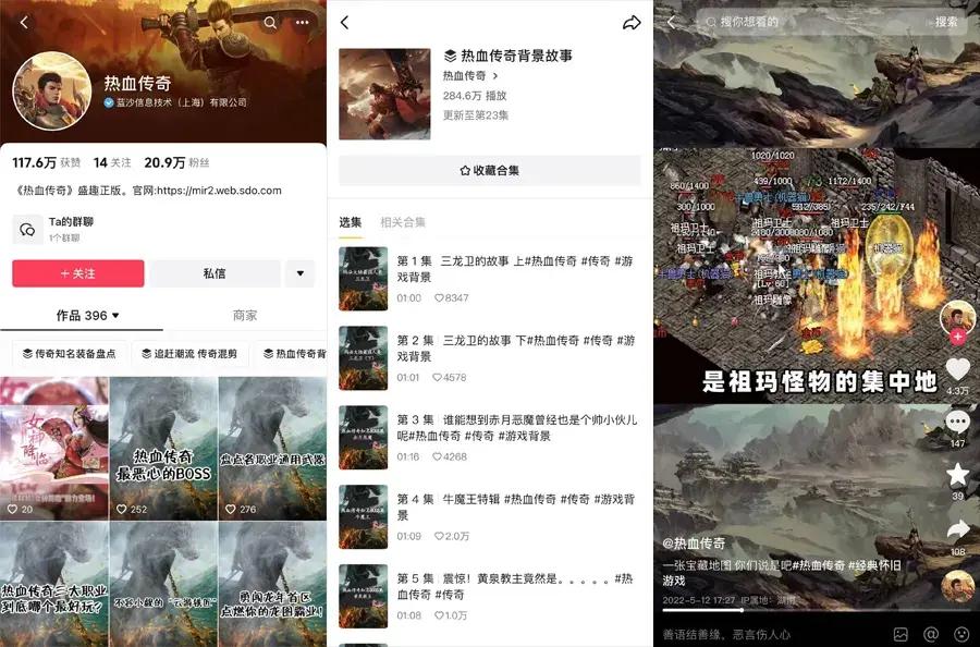 近幾年,隨着抖音、快手等短視頻平臺的飛速崛起,盛趣遊戲也在不斷加強與短視頻平臺的合作,而《熱血傳奇》則是盛趣遊戲旗下最早佈局短視頻內容生態的端遊之一。據統計,在抖音平臺,《熱血傳奇》官方賬號已累計發佈了396個短視頻,涵蓋了遊戲內的精彩瞬間、玩家故事、攻略教程、遊戲文化等多個方面;而遊戲在快手的直播活動,幾乎保持着每週直播5場的節奏,每週平均直播觀衆數超過2萬人。背靠兩大主流短視頻平臺龐大、覆蓋面極廣的自有流量池,不僅實現了大量老玩家的召回以及引流拉新,也讓《熱血傳奇》運營團隊增加了接觸用戶的重要窗口。