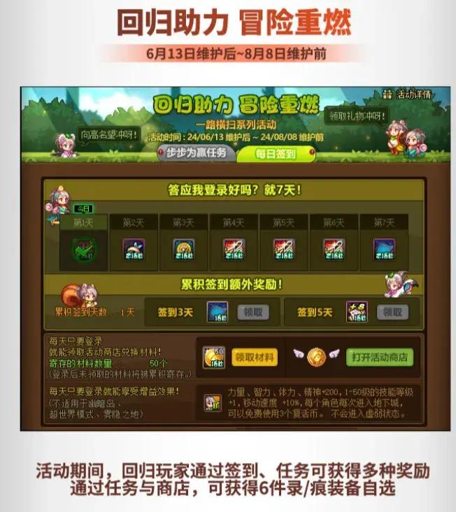 在具體的福利活動中,除了提供透明天空套、+13強化卷這種直接福利外,迴流活動還提供“黃金轉職書”,在方便轉職的同時也省去了再次更換裝備時消耗的資源與時間成本。嫩芽活動則鼓勵活躍玩家“老帶新”,進一步增強了社交粘性。