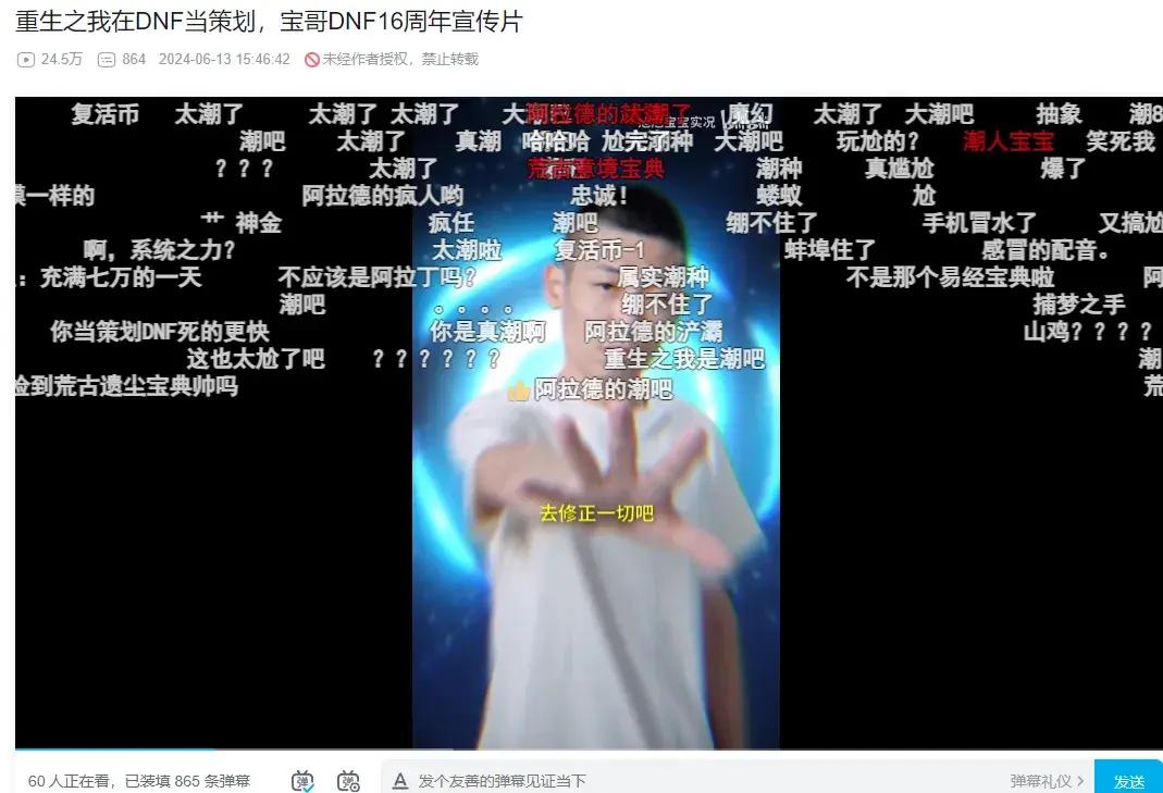 相比這些,更有趣的是短片的主演和發佈者,是被DNF玩家們譽爲“八百萬勇士嘴替”的旭旭寶寶,且發佈的時間——6月13日,則正趕上DNF更新十六週年版本。